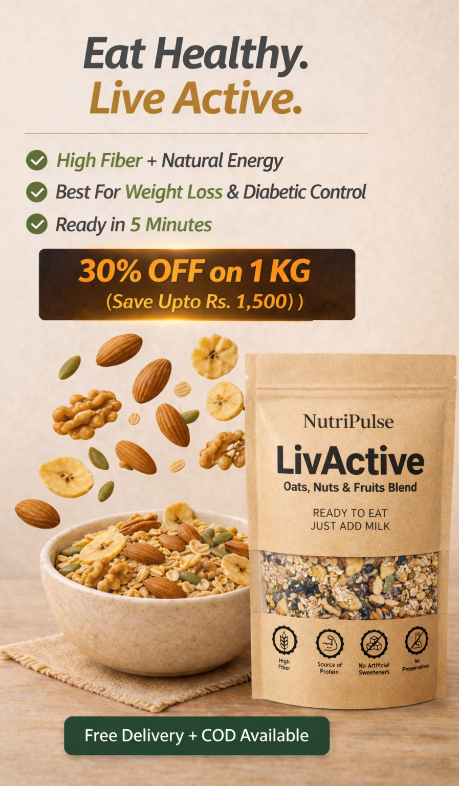 NutriPulse Oats With Nuts – Classic Breakfast Mix